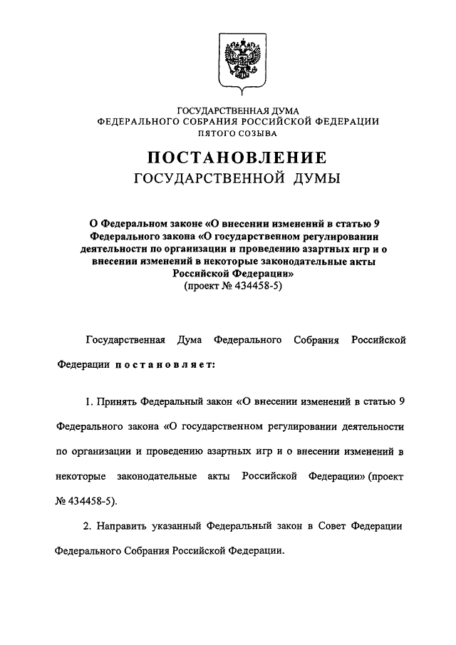 ПО ОРГАНИЗАЦИИ И ПРОВЕДЕНИЮ АЗАРТНЫХ ИГР И О ВНЕСЕНИИ ИЗМЕНЕНИЙ В