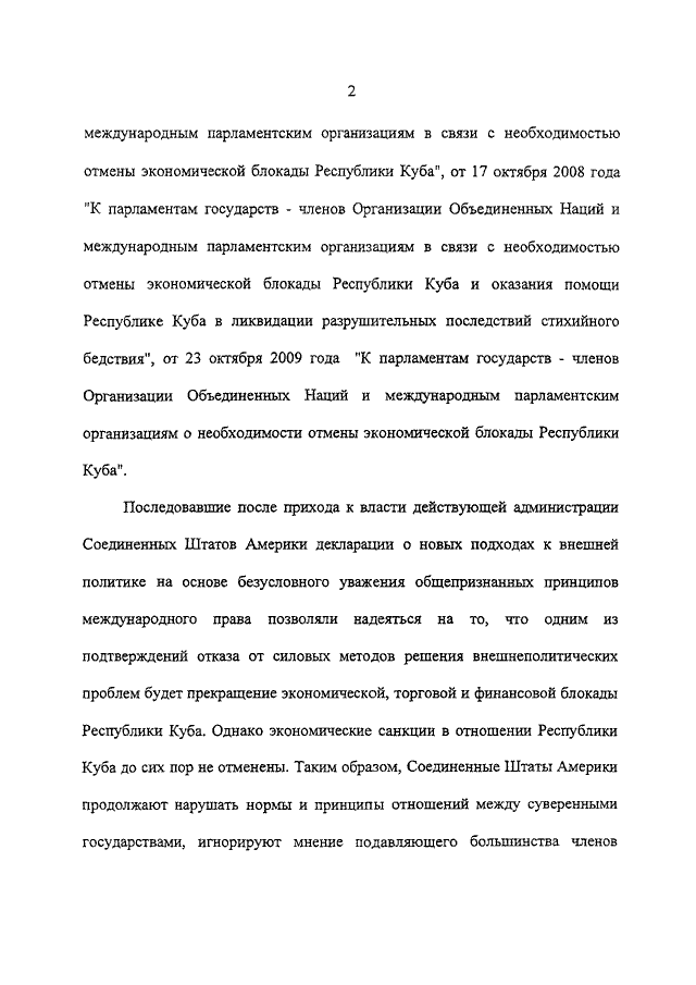 "ОБ ОБРАЩЕНИИ ГОСУДАРСТВЕННОЙ ДУМЫ ФЕДЕРАЛЬНОГО СОБРАНИЯ РОССИЙСКОЙ ФЕДЕРАЦИИ "К ПАРЛАМЕНТАМ ГОСУДАРСТВ - ЧЛЕНОВ ОРГАНИЗАЦИИ ОБЪЕДИНЕННЫХ НАЦИЙ И МЕЖДУНАРОДНЫМ ПАРЛАМЕНТСКИМ ОРГАНИЗАЦИЯМ О НЕОБХОДИМОСТИ ПРЕКРАЩЕНИЯ ЭКОНОМИЧЕСКОЙ, ТОРГОВОЙ И ФИНАНСОВОЙ БЛОКАДЫ РЕСПУБЛИКИ КУБА"