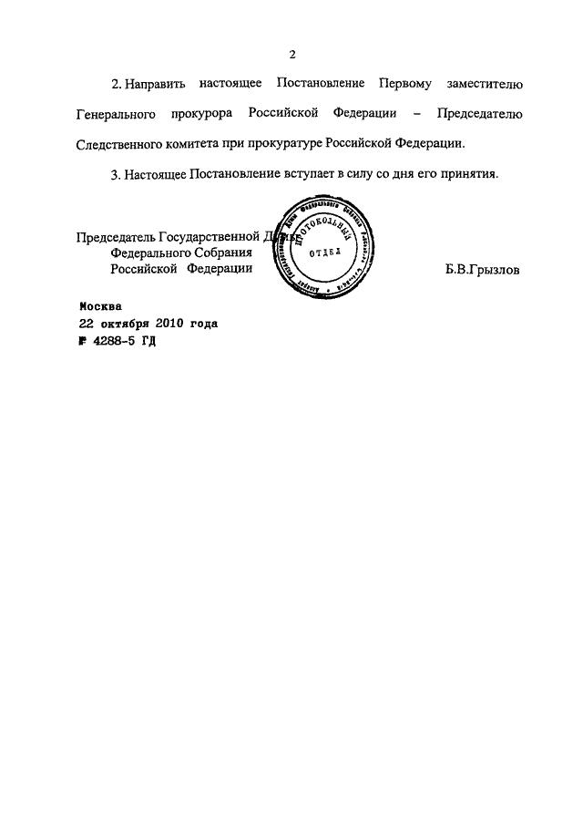 ПОСТАНОВЛЕНИЕ ГД ФС РФ от 22.10.2010 N 4288-5 ГД