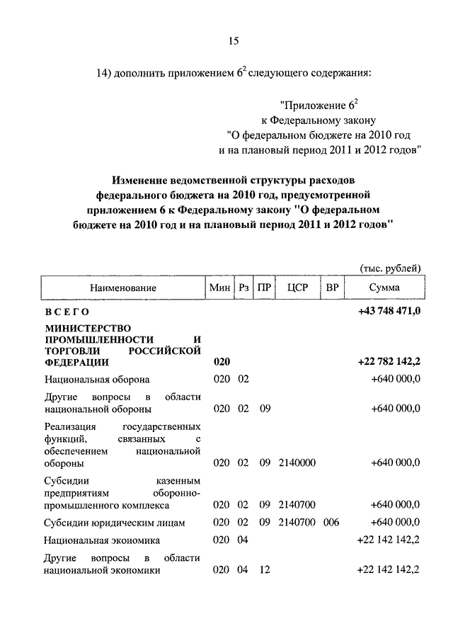 "О ВНЕСЕНИИ ИЗМЕНЕНИЙ В ФЕДЕРАЛЬНЫЙ ЗАКОН "О ФЕДЕРАЛЬНОМ БЮДЖЕТЕ НА 2010 ГОД И НА ПЛАНОВЫЙ ПЕРИОД 2011 И 2012 ГОДОВ"