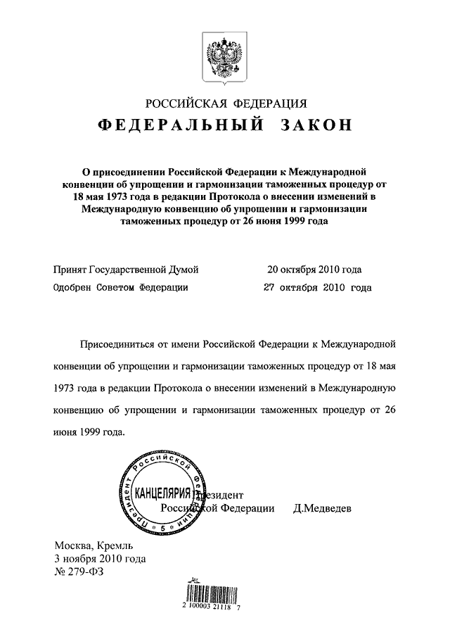 ФЕДЕРАЛЬНЫЙ ЗАКОН от 03.11.2010 N 279-ФЗ