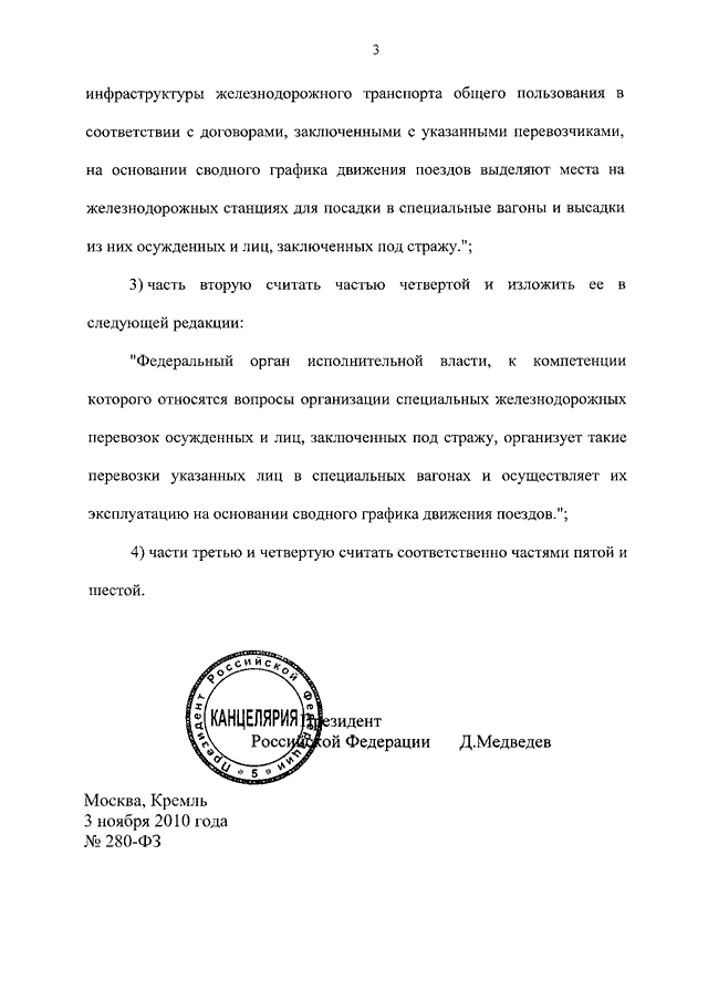 ФЕДЕРАЛЬНЫЙ ЗАКОН от 03.11.2010 N 280-ФЗ