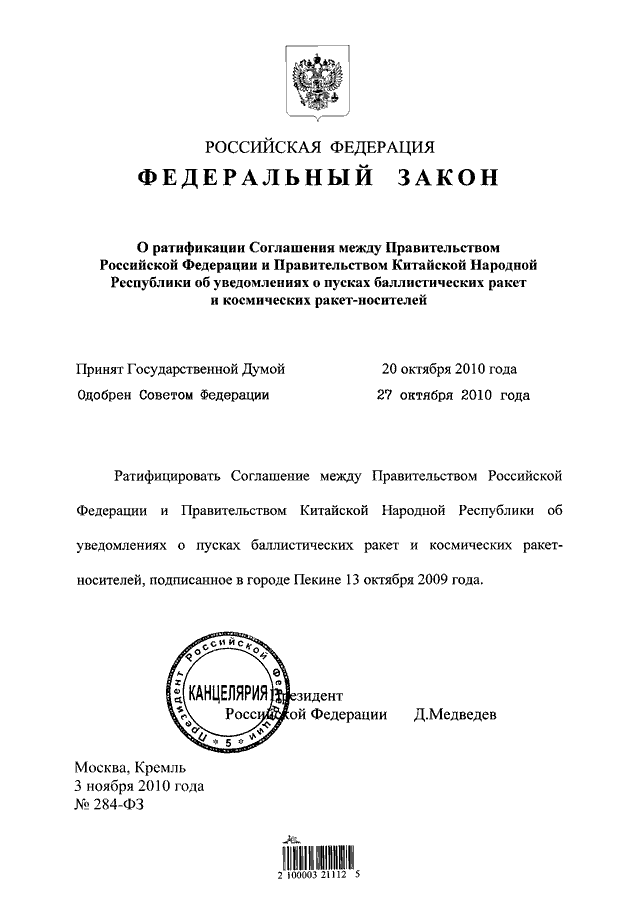 ФЕДЕРАЛЬНЫЙ ЗАКОН от 03.11.2010 N 284-ФЗ