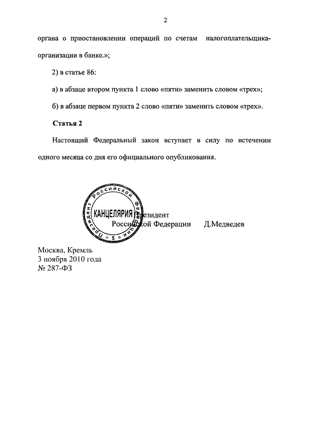 ФЕДЕРАЛЬНЫЙ ЗАКОН от 03.11.2010 N 287-ФЗ