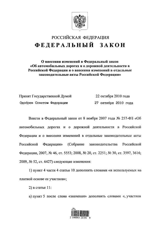 ДОРОГАХ И О ДОРОЖНОЙ ДЕЯТЕЛЬНОСТИ В РОССИЙСКОЙ ФЕДЕРАЦИИ И О