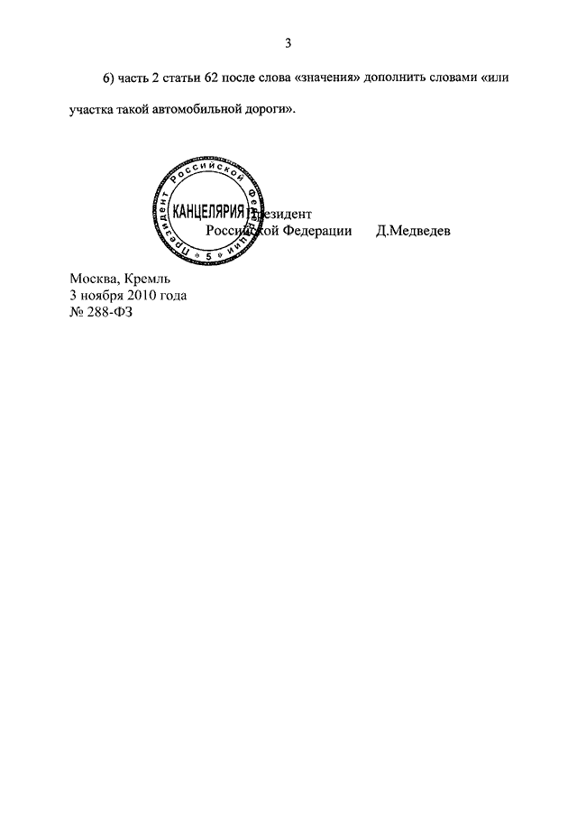 ФЕДЕРАЛЬНЫЙ ЗАКОН от 03.11.2010 N 288-ФЗ