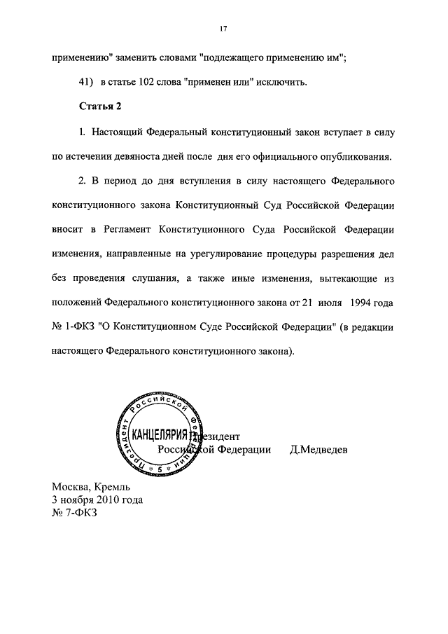 ФЕДЕРАЛЬНЫЙ КОНСТИТУЦИОННЫЙ ЗАКОН от 03.11.2010 N 7-ФКЗ
