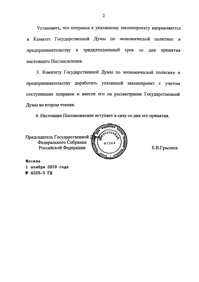 ПОСТАНОВЛЕНИЕ ГД ФС РФ от 01.11.2010 N 4328-5 ГД