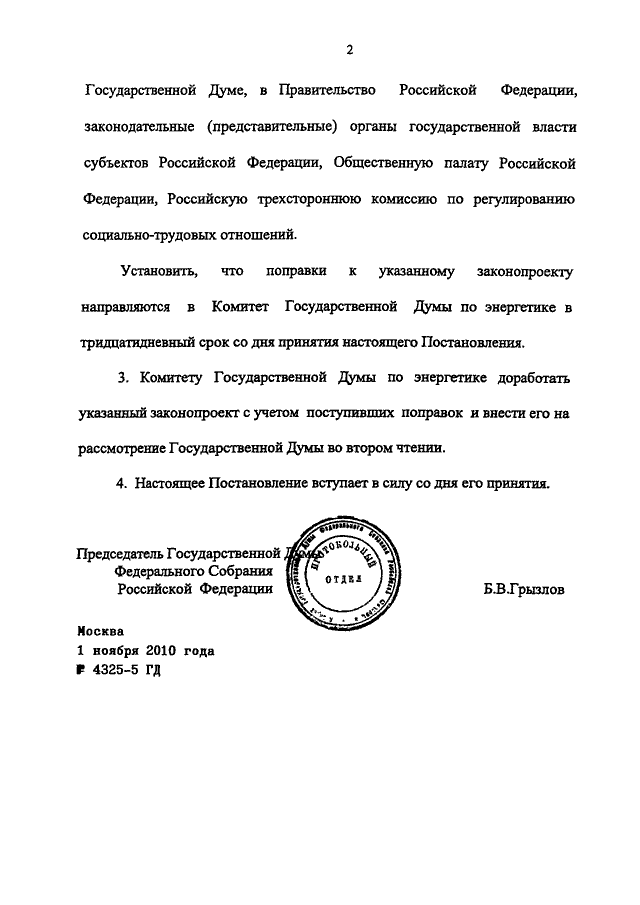 ПОСТАНОВЛЕНИЕ ГД ФС РФ от 01.11.2010 N 4325-5 ГД