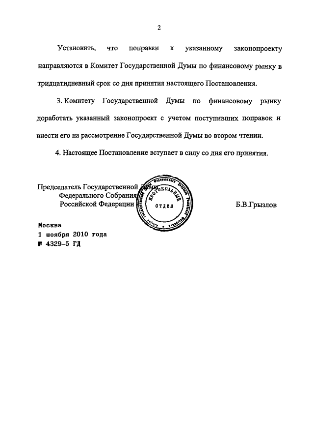 ПОСТАНОВЛЕНИЕ ГД ФС РФ от 01.11.2010 N 4329-5 ГД