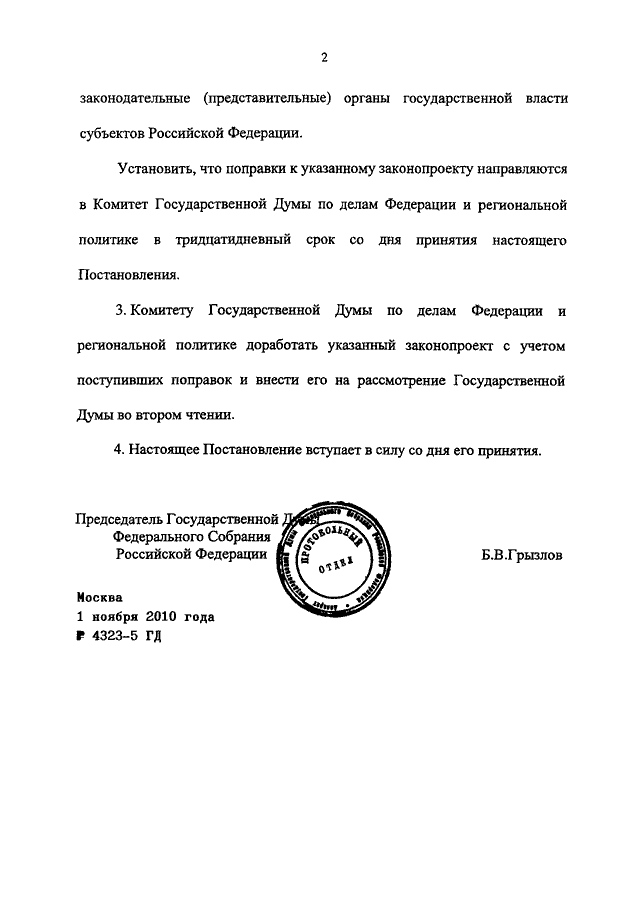 ПОСТАНОВЛЕНИЕ ГД ФС РФ от 01.11.2010 N 4323-5 ГД