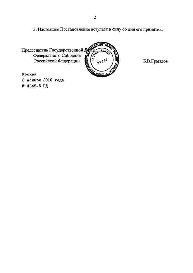 ПОСТАНОВЛЕНИЕ ГД ФС РФ от 02.11.2010 N 4348-5 ГД