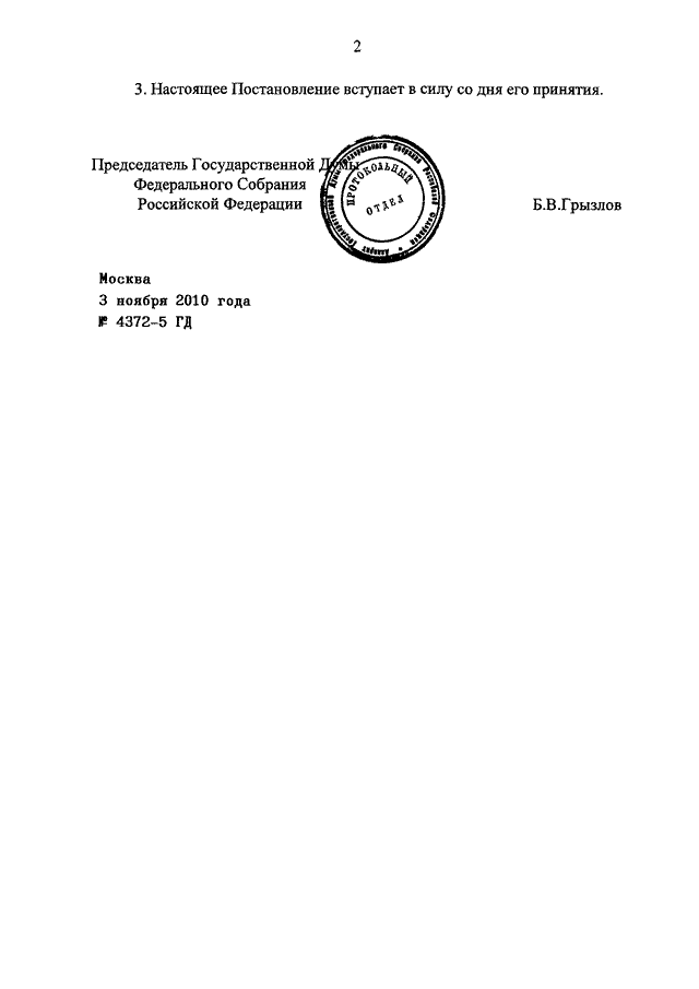 ПОСТАНОВЛЕНИЕ ГД ФС РФ от 03.11.2010 N 4372-5 ГД