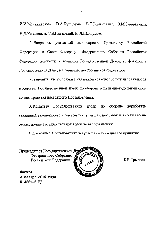 ПОСТАНОВЛЕНИЕ ГД ФС РФ от 03.11.2010 N 4361-5 ГД