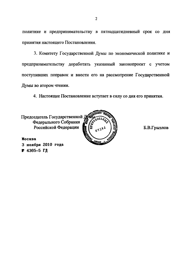 ПОСТАНОВЛЕНИЕ ГД ФС РФ от 03.11.2010 N 4365-5 ГД