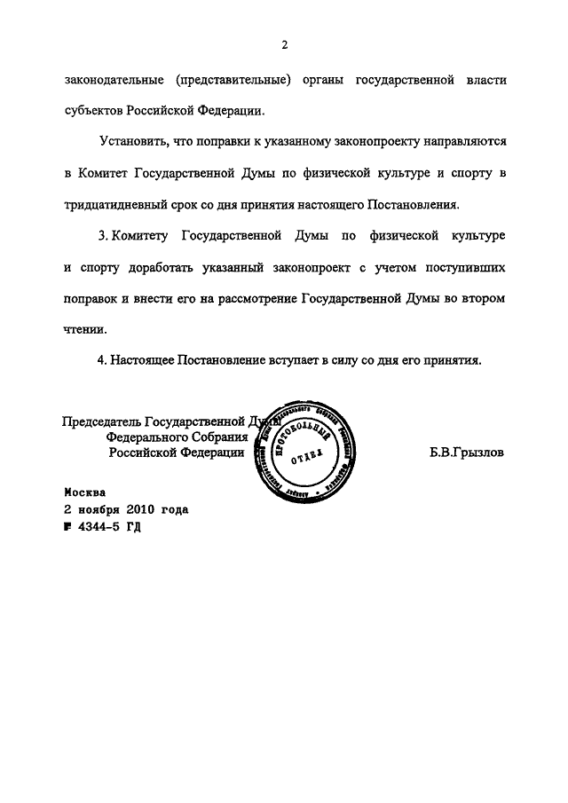 ПОСТАНОВЛЕНИЕ ГД ФС РФ от 02.11.2010 N 4344-5 ГД