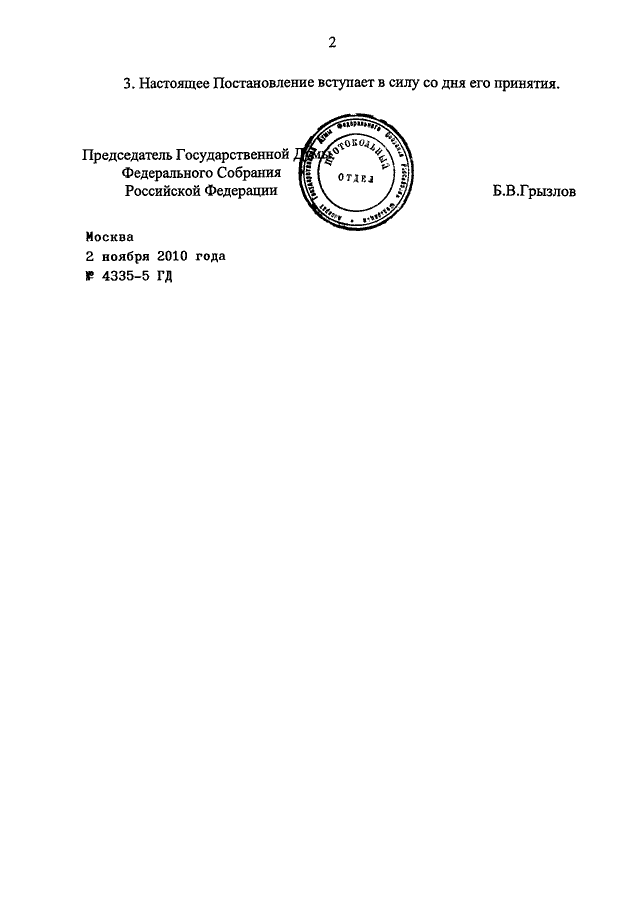 ПОСТАНОВЛЕНИЕ ГД ФС РФ от 02.11.2010 N 4335-5 ГД