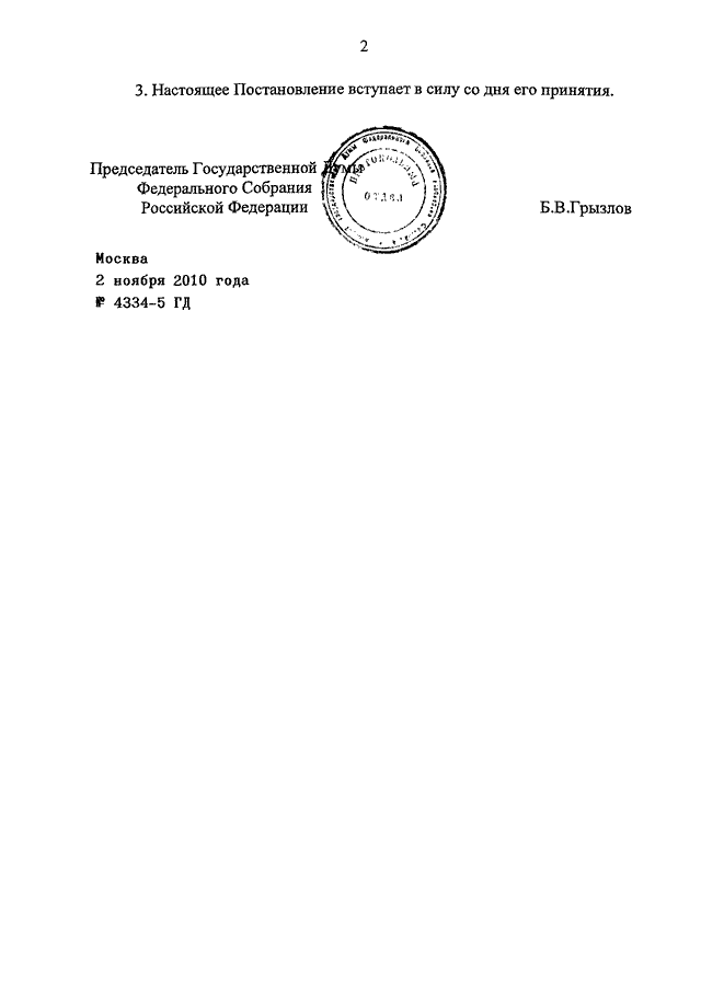 ПОСТАНОВЛЕНИЕ ГД ФС РФ от 02.11.2010 N 4334-5 ГД