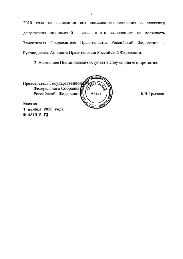 ПОСТАНОВЛЕНИЕ ГД ФС РФ от 01.11.2010 N 4313-5 ГД
