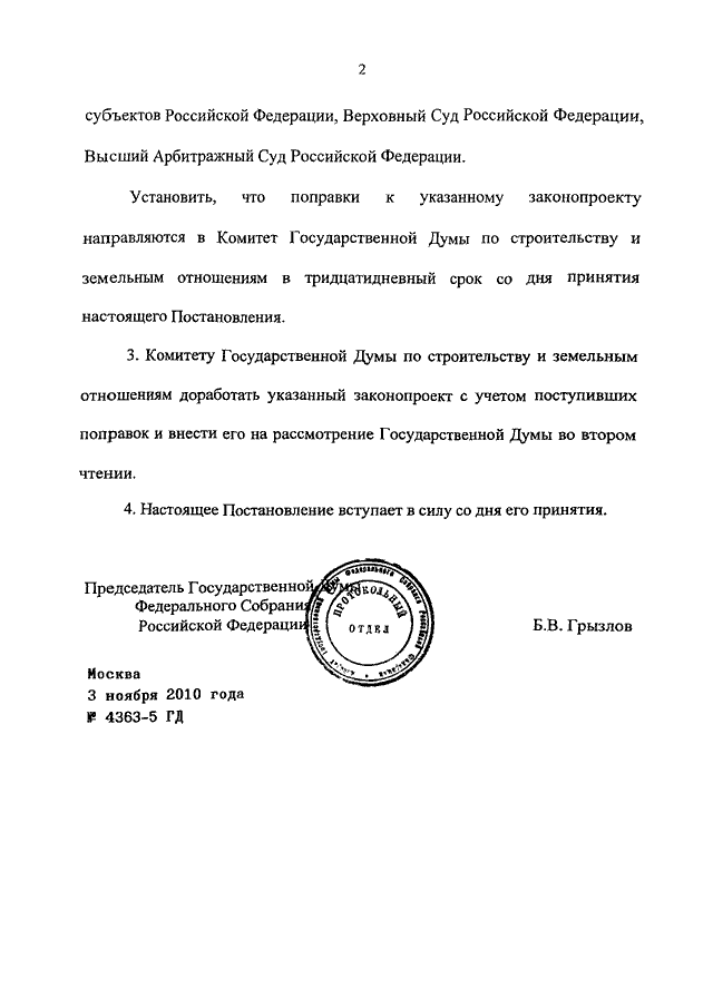ПОСТАНОВЛЕНИЕ ГД ФС РФ от 03.11.2010 N 4363-5 ГД