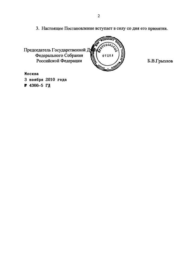ПОСТАНОВЛЕНИЕ ГД ФС РФ от 03.11.2010 N 4366-5 ГД