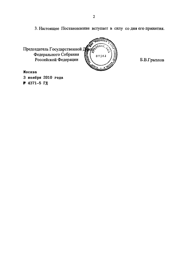 ПОСТАНОВЛЕНИЕ ГД ФС РФ от 03.11.2010 N 4371-5 ГД