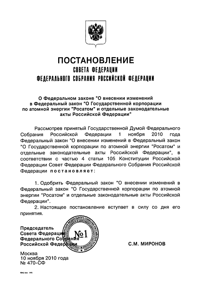 ПОСТАНОВЛЕНИЕ СФ ФС РФ от 10.11.2010 N 470-СФ