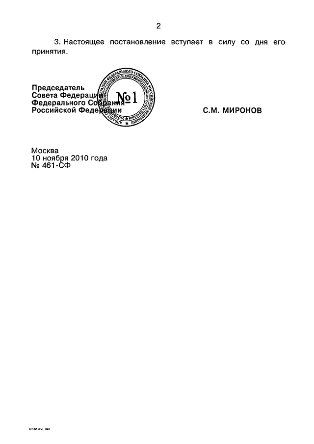 ПОСТАНОВЛЕНИЕ СФ ФС РФ от 10.11.2010 N 461-СФ