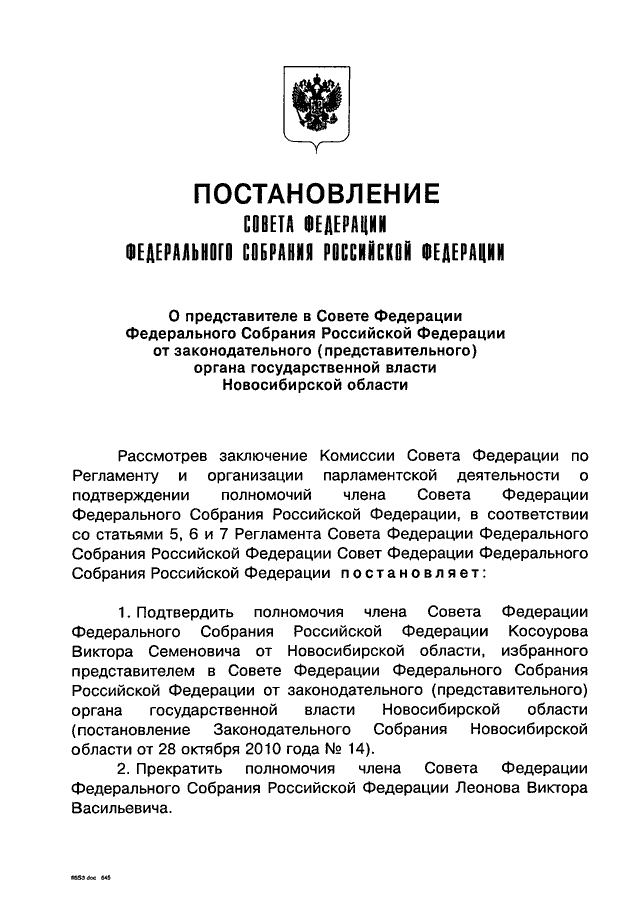 "О ПРЕДСТАВИТЕЛЕ В СОВЕТЕ ФЕДЕРАЦИИ ФЕДЕРАЛЬНОГО СОБРАНИЯ РОССИЙСКОЙ ФЕДЕРАЦИИ ОТ ЗАКОНОДАТЕЛЬНОГО (ПРЕДСТАВИТЕЛЬНОГО) ОРГАНА ГОСУДАРСТВЕННОЙ ВЛАСТИ НОВОСИБИРСКОЙ ОБЛАСТИ"