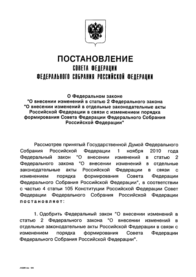 ПОРЯДКА ФОРМИРОВАНИЯ СОВЕТА ФЕДЕРАЦИИ ФЕДЕРАЛЬНОГО СОБРАНИЯ