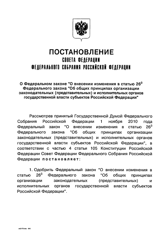 ПОСТАНОВЛЕНИЕ СФ ФС РФ от 10.11.2010 N 476-СФ