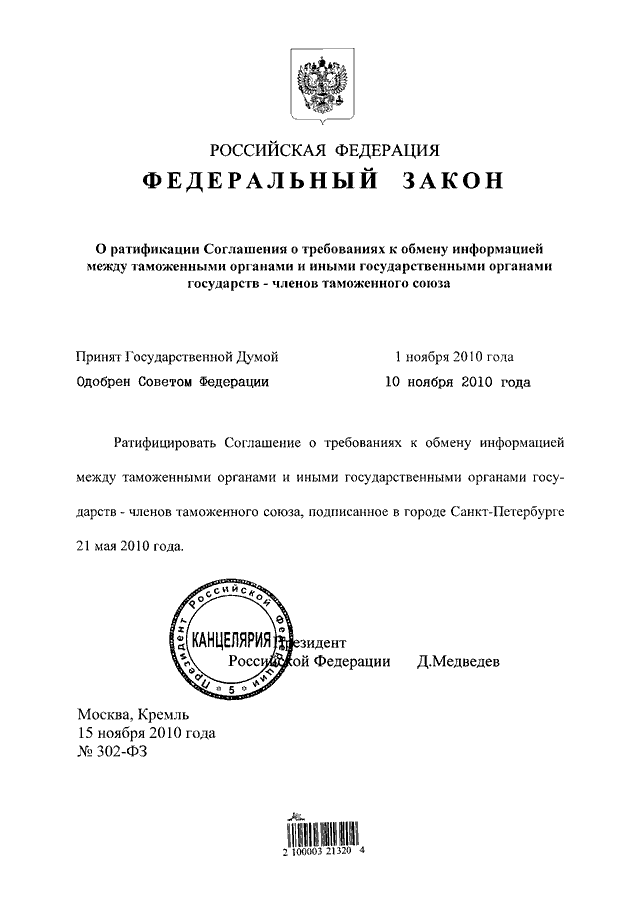 ФЕДЕРАЛЬНЫЙ ЗАКОН от 15.11.2010 N 302-ФЗ