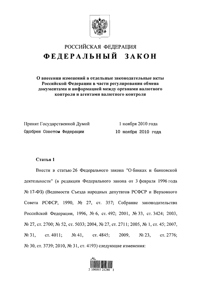 ФЕДЕРАЛЬНЫЙ ЗАКОН от 15.11.2010 N 294-ФЗ