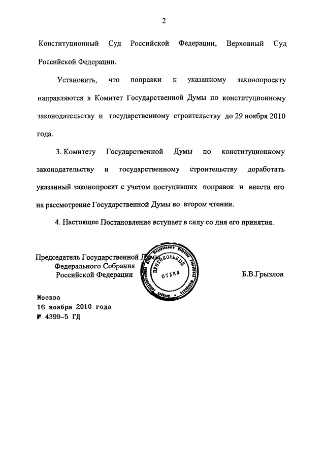 ПОСТАНОВЛЕНИЕ ГД ФС РФ от 16.11.2010 N 4399-5 ГД