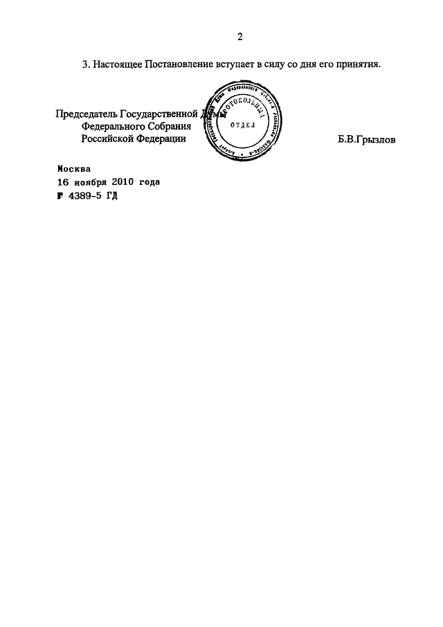 ПОСТАНОВЛЕНИЕ ГД ФС РФ от 16.11.2010 N 4389-5 ГД