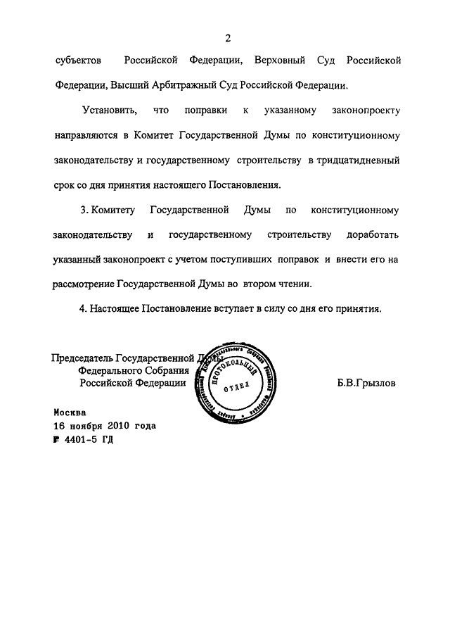 ПОСТАНОВЛЕНИЕ ГД ФС РФ от 16.11.2010 N 4401-5 ГД