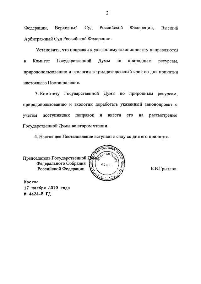 ПОСТАНОВЛЕНИЕ ГД ФС РФ от 17.11.2010 N 4424-5 ГД