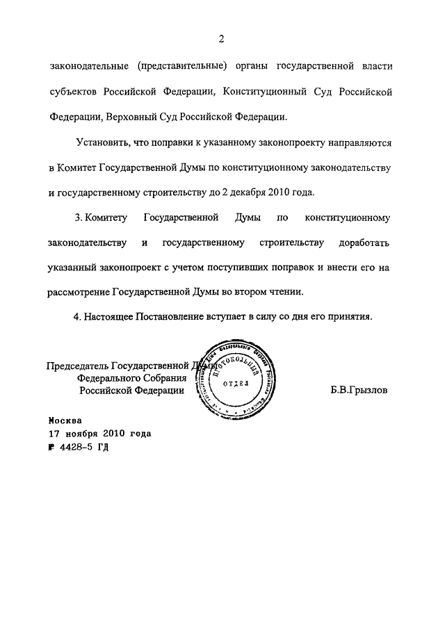 ПОСТАНОВЛЕНИЕ ГД ФС РФ от 17.11.2010 N 4428-5 ГД