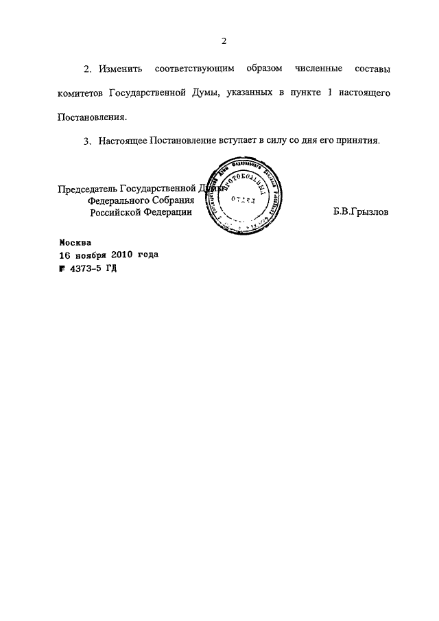 ПОСТАНОВЛЕНИЕ ГД ФС РФ от 16.11.2010 N 4373-5 ГД