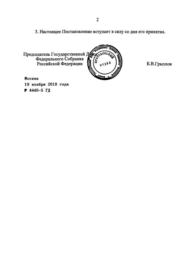 ПОСТАНОВЛЕНИЕ ГД ФС РФ от 19.11.2010 N 4448-5 ГД