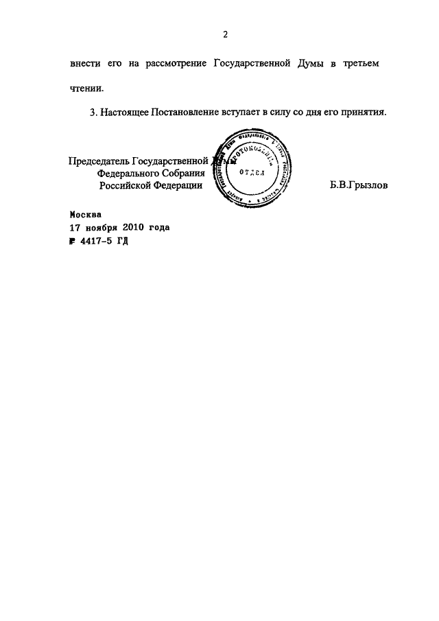 ПОСТАНОВЛЕНИЕ ГД ФС РФ от 17.11.2010 N 4417-5 ГД