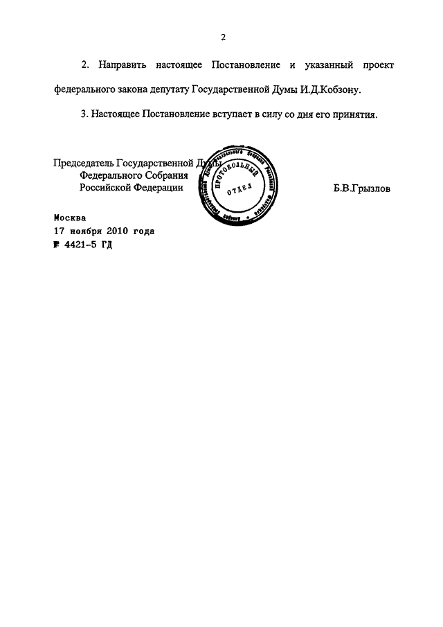 ПОСТАНОВЛЕНИЕ ГД ФС РФ от 17.11.2010 N 4421-5 ГД