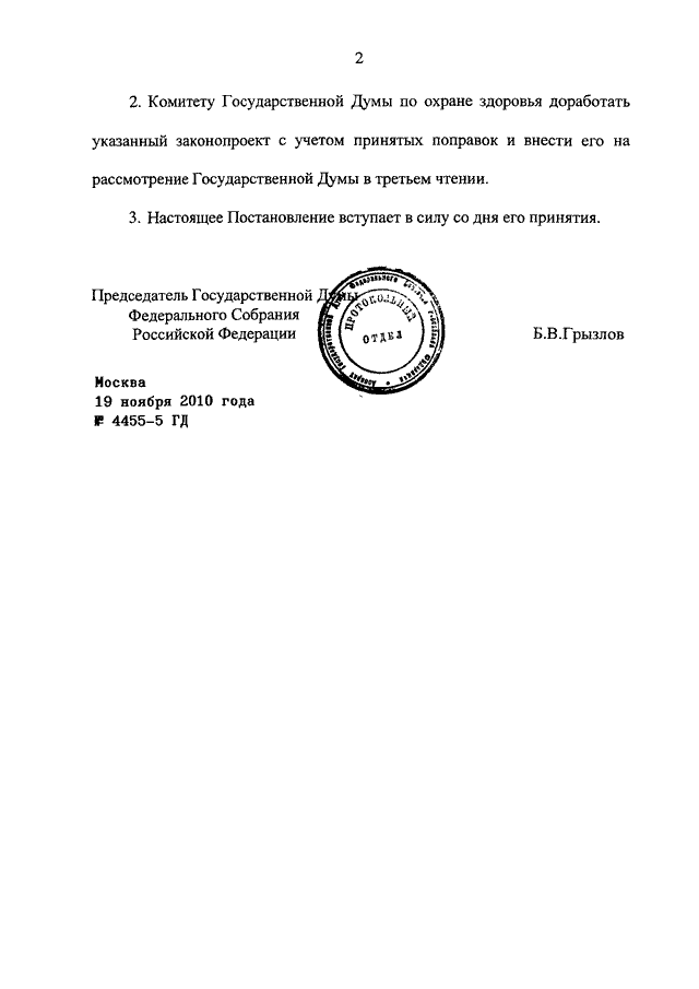 ПОСТАНОВЛЕНИЕ ГД ФС РФ от 19.11.2010 N 4455-5 ГД