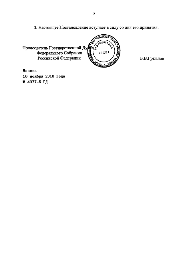 ПОСТАНОВЛЕНИЕ ГД ФС РФ от 16.11.2010 N 4377-5 ГД