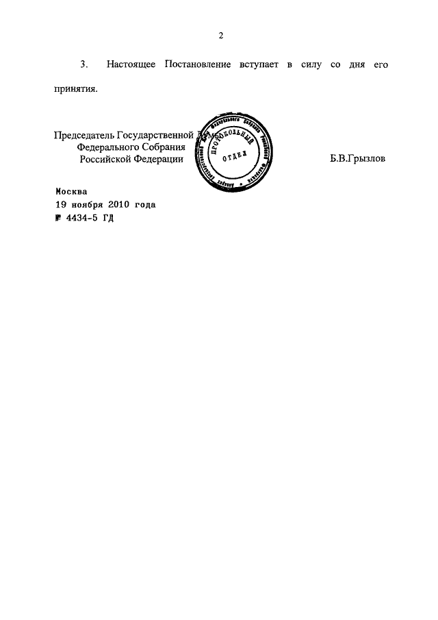 ПОСТАНОВЛЕНИЕ ГД ФС РФ от 19.11.2010 N 4434-5 ГД