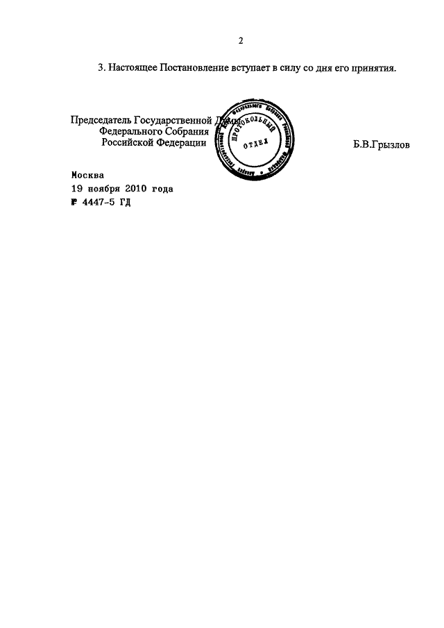 ПОСТАНОВЛЕНИЕ ГД ФС РФ от 19.11.2010 N 4447-5 ГД