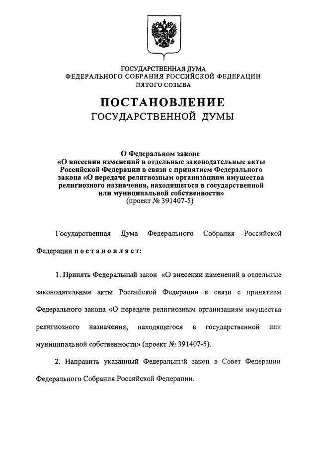 ЗАКОНОДАТЕЛЬНЫЕ АКТЫ РОССИЙСКОЙ ФЕДЕРАЦИИ В СВЯЗИ С ПРИНЯТИЕМ