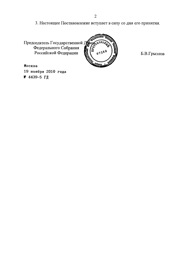 ПОСТАНОВЛЕНИЕ ГД ФС РФ от 19.11.2010 N 4439-5 ГД