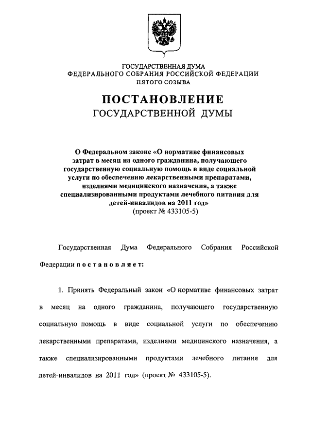 ПОСТАНОВЛЕНИЕ ГД ФС РФ от 24.11.2010 N 4485-5 ГД