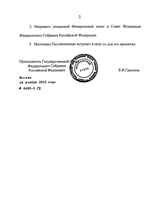 ПОСТАНОВЛЕНИЕ ГД ФС РФ от 24.11.2010 N 4485-5 ГД